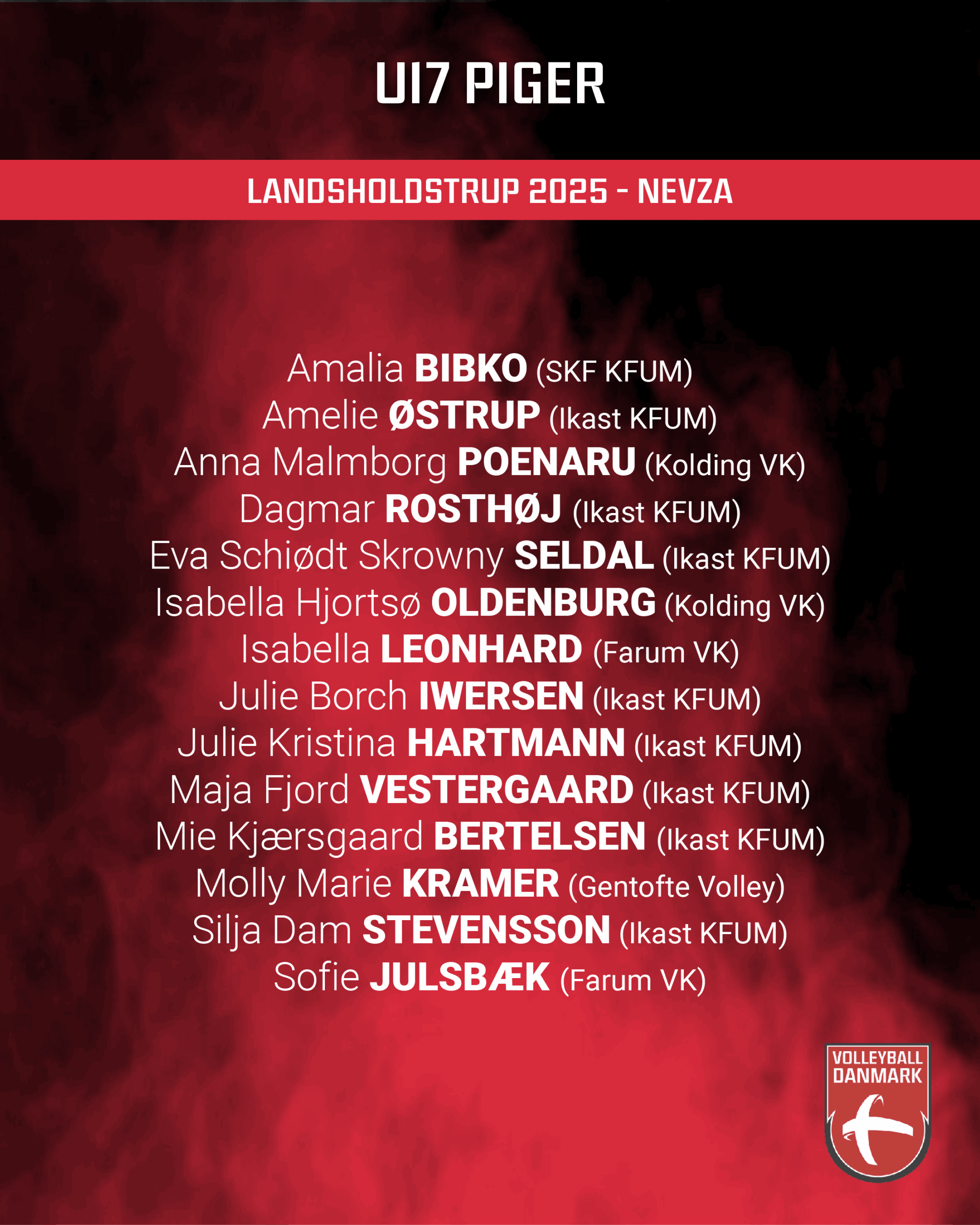 Holdet mødes igen i oktober måned til en kort træningssamling, der skal forberede U17 landsholdet på den NEVZA-turnering, de skal spille i Ikast.
